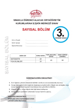 3. Kitapçık türünü cevap kâğıdındaki ilgili alana kodlayınız.