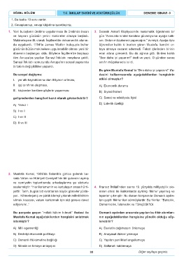 SÖZEL BÖLÜM T.C. İNKILAP TARİHİ VE ATATÜRKÇÜLÜK DENEME SINAVI -3