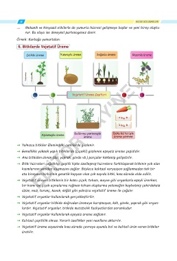 ˇ Vejetatif üreyen bitkilerin bir kısmı çiçek, tohum, meyve gibi organlarla eşeyli ürerken;