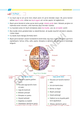 algılanmasını, hafıza, bilinç, zeka, yazma, konuşma ve öğrenme gibi merkezlerin bulunduğu