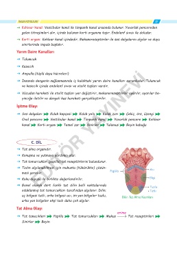 ˇ Tat tomurcukları (papilla) tat reseptörlerini bulundurur.