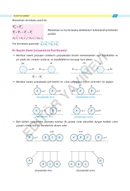 ˇ Merkezi esnek çarpışan cisimlerin çarpışmadan önceki momentumları eşit büyüklükte ve