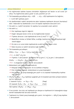ˇ Tepkimenin hız ifadesi yavaş basamağa göre yazılır. Hız bağıntısı r = k[N O] olup tepkime
