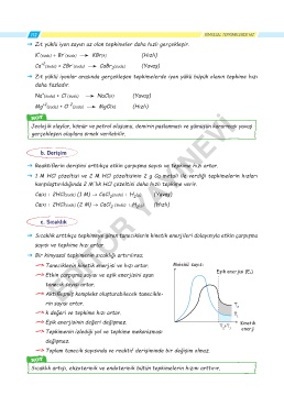 ˇ Sıcaklık arttıkça tepkimeye giren taneciklerin kinetik enerjileri dolayısıyla etkin çarpışma