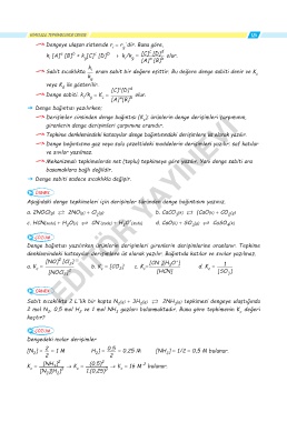 Tepkime denklemindeki katsayılar denge bağıntısındaki derişimlere üs olarak yazılır.