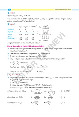 ˇ Kısmi basınçla ifade edilen denge sabiti "K " ile gösterilir