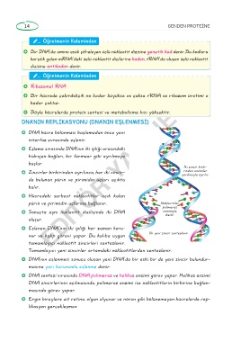 » DNA’nın eşlenmesi sonucu oluşan yeni DNA’da bir eski bir de yeni zincir bulundur-