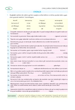 78 CANLILARDA ENERJİ DÖNÜŞÜMLERİ