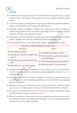 » Tek çenekli ve çift çenekli bitkilerin yaprak ayalarında damarlanma durumu farklılık