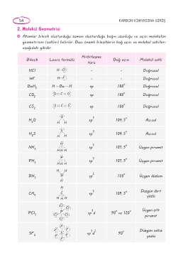geometrisini (şeklini) belirler. Bazı önemli bileşiklerin bağ açısı ve molekül şekilleri