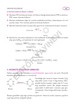 Ɖ Asetilene HCI katılmasıyla oluşan vinil klorür bileşiği polimerleşerek PVC'yi oluşturur.