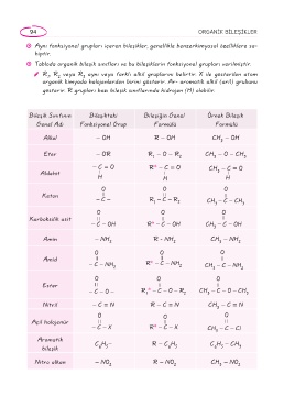 Ɖ Tabloda organik bileşik sınıfları ve bu bileşiklerin fonksiyonel grupları verilmiştir.