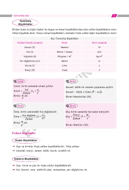ˇ Uzunluk, enerji, zaman, kütle, hacim, sıcaklık vb.