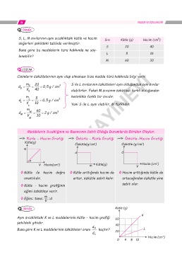 S, L, M sıvılarının aynı sıcaklıktaki kütle ve hacim Sıvı Kütle (g) Hacim (cm )