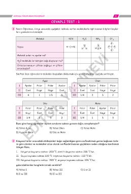 1 Sevim Öğretmen, kimya sınavında aşağıdaki tabloda verilen moleküllerle ilgili istenen bilgileri boşluk-