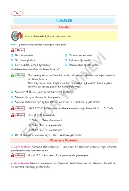 ƈ Kümelerde aynı eleman bir kez yazılır.