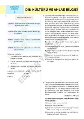 SINAVI DİN KÜLTÜRÜ VE AHLAK BİLGİSİ
