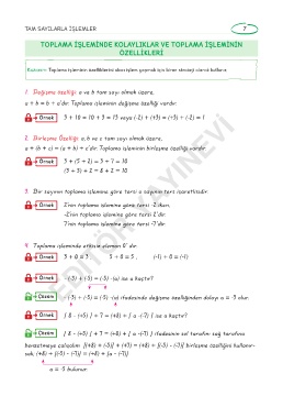 Örnek 3 + 10 = 10 + 3 = 13 veya (-2) + (+3) = (+3) + (-2) = 1