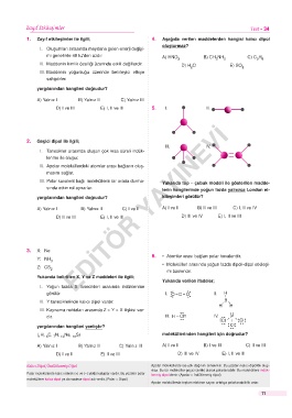 1. Zayıf etkileşimler ile ilgili; 4. Aşağıda verilen maddelerden hangisi kalıcı dipol