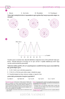 Yukarıda verilen grafik A, B ve C popülasyonun sıcaklık ile birey sayısı arasındaki iliş-
