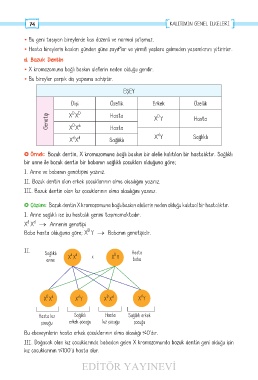 œ Örnek: Bozuk dentin, X kromozomuna bağlı baskın bir alelle kalıtılan bir hastalıktır. Sağlıklı