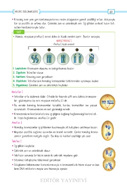 y Bu evrede homolog kromozomlar karşılıklı, kardeş kromatitler ise yapışık