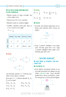* Sıcaklıkla, maddenin cinsine göre, doğru ya * Devredeki akım şiddetini değiştirmek için kul-