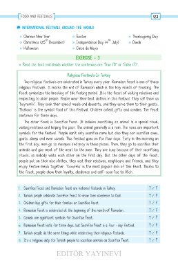 7. Turkish people do the same things while celebrating their religious festivals. T / F