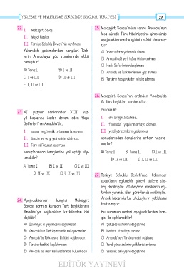 D) II ve III E) I, II ve III 27. Türkiye Selçuklu Devleti’nde, hükümdar