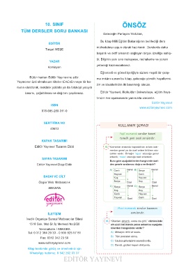 basımı, çoğaltılması ve dağıtımı yapılamaz. Editör Yayınevi, ilkokuldan üniversiteye, eğitim haya-