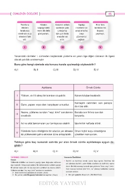 Tabloya göre kaç numaralı satırda yer alan örnek cümle açıklamaya uygun de-