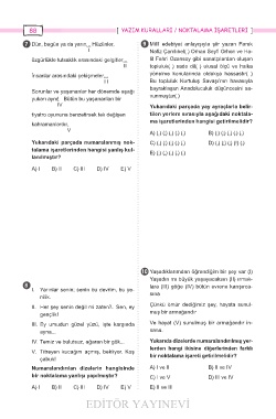 Yukarıdaki parçada numaralanmış nok- C) (,) (:) (;) (.) (.) D) (,) (;) (;) (!) (.)