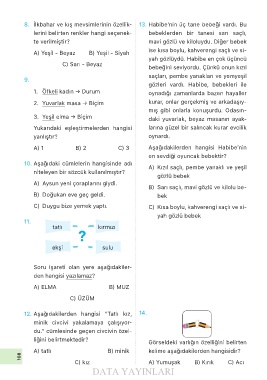 8. İlkbahar ve kış mevsimlerinin özellik- 13. Habibe’nin üç tane bebeği vardı. Bu