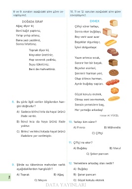 8 ve 9. soruları aşağıdaki şiire göre ce- 10, 11 ve 12. soruları aşağıdaki şiire göre