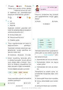 ğıdakilerden hangisi getirilirse an- Tablodaki kelimelerden aşağıdaki ku-