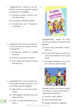 da uyulması gereken nezaket kuralla- A) Sessiz olup yanındakini rahatsız