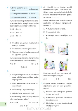6. 1. Elimi, yüzümü yıka- 9. Ali elindeki deney tüpüne gerekli