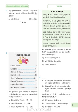 KİTAPLARDAKİ TEMEL BÖLÜMLER TEST 34