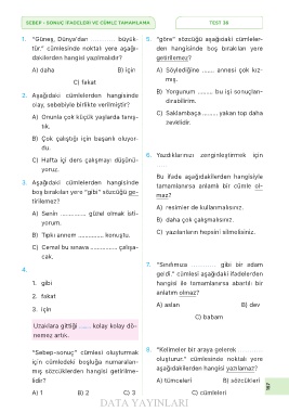SEBEP - SONUÇ İFADELERİ VE CÜMLE TAMAMLAMA TEST 36