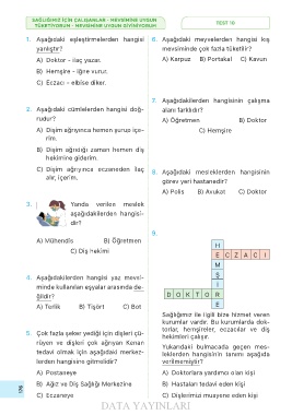 SAĞLIĞIMIZ İÇİN ÇALIŞANLAR - MEVSİMİNE UYGUN TEST 10