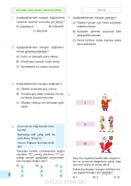KÜLTÜREL ÖGELERİMİZ- MİSAFİRLERİMİZ TEST 16