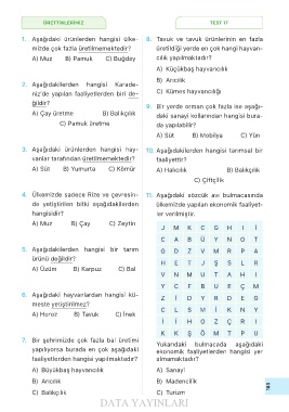 4. Ülkemizde sadece Rize ve çevresin- 11. Aşağıdaki sözcük avı bulmacasında