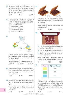 14. Evdeki 38 yumurtanın 9 tanesini ye- Tabloda 2 - C sınıfında sevilen renk-