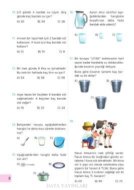 10. Elif günde 4 bardak su içiyor. Beş 16. Ayran dolu sürahiyi aşa-
