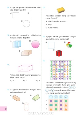 9. Aşağıdaki geometrik şekillerden han- 13.