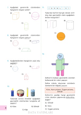 7. Aşağıdaki geometrik cisimlerden 11. İ D R N L İ S İ