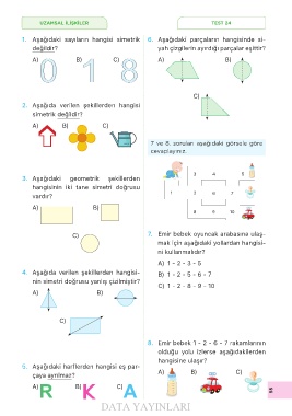 1. Aşağıdaki sayıların hangisi simetrik 6. Aşağıdaki parçaların hangisinde si-