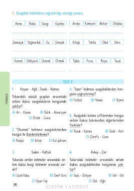 C� Aşağıdaki kelimelerin çağrıştırdığı sözcüğü yazınız.