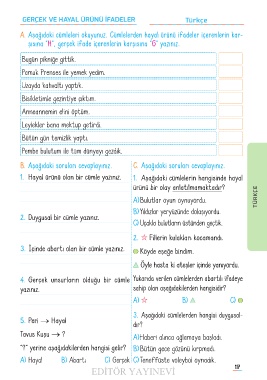 GERÇEK VE HAYAL ÜRÜNÜ İFADELER Türkçe