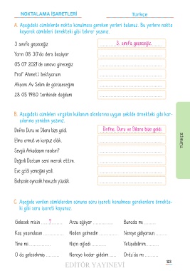 A� Aşağıdaki cümlelerde nokta konulması gereken yerleri bulunuz. Bu yerlere nokta